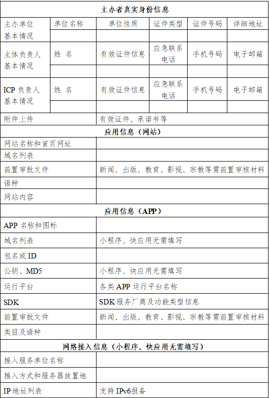 在工信部《关于开展移动互联网应用程序备案工作的通知》附件《互联网信息服务备案登记表》中,个别栏目中出现了“小程序、快应用无需填写”的字样,这也意味着不只是原生App游戏、小游戏也在此次工信部移动互联网应用程序备案工作的监管范围中。