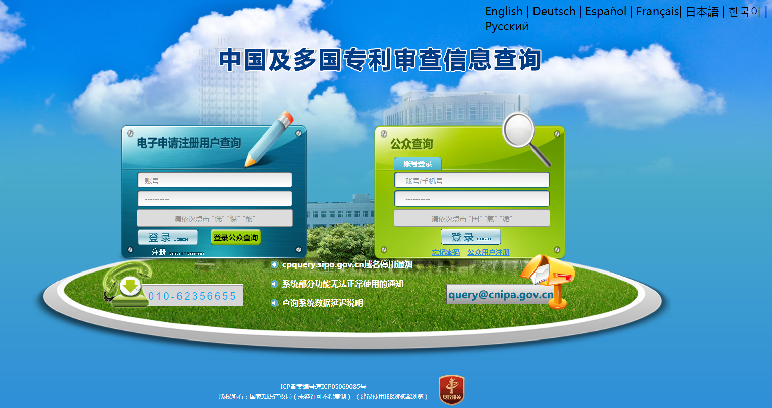 多国发明专利审查信息查询包括中国国家知识产权局、欧洲专利局、日本特许厅、韩国特许厅、美国专利商标局受理的发明专利申请及审查信息。