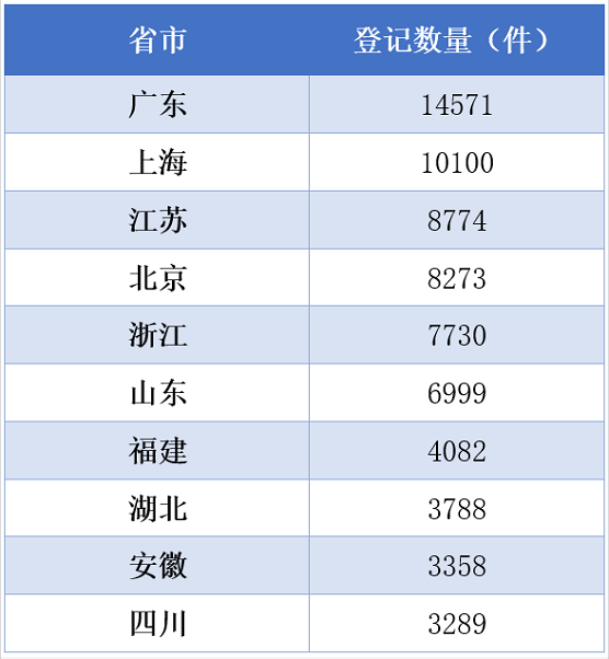 从各省、自治区、直辖市登记排名情况来看,2月软件登记数量排名居前的十个省(市)依次为:广东省、上海市、江苏省、北京市、浙江省、山东省、福建省、湖北省、安徽省和四川省。前十省(市)共登记软件7万件,约占我国软件登记总量的74%,其中上海市和福建省排名环比分别提升2个和1个位次。