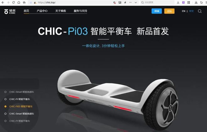 在需求的带动下,电动平衡车相关企业数量呈增长趋势,竞争日趋激烈。浙江骑客机器人科技有限公司是一家集研发、生产、销售和服务于一体的全系列智能平衡车专业化制造企业,生产的平衡车系列产品深受海内外青少年和发烧友喜爱,骑客用chic.top搭建官网,展示他们炫酷的平衡车产品。