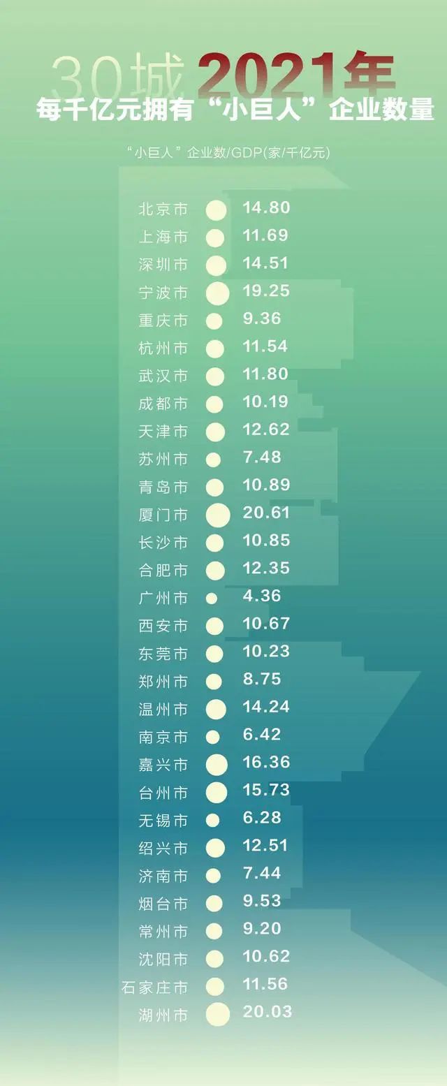 另一方面,专精特新“小巨人”企业的发明专利数量一定程度上也反映了城市的科技创新实力。
